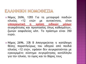 - Μεταφορά βρέφους – παιδιού στο αυτοκίνητο